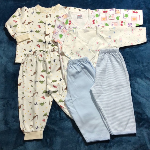 This is a pajama set of 3 tops (2 being tie up jackets) and 3 bottoms. They are all 100% cotton.