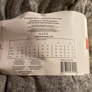 Jogger style pajama pants and long sleeve top. Super soft with ivory lace detail.