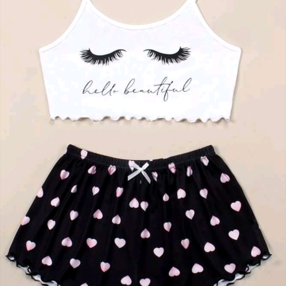 2 piece black and white hello beautiful pj set size large can fit up to a size 12 in women great spandex stretchy material never been worn
