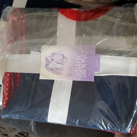 Cozy Pajama set, pkg never opened. inseam on pants unknown.Fiber and care instructions in 2nd picture.