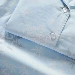 Celebrate the magic of the holidays with these Harry Potter-inspired pajamas, featuring metallic snowflakes shimmering against a light blue hue. Crafted from breathable cotton percale, this supersoft set has a button-up top and elastic waistband bottoms so you can have the most magical night’s rest.