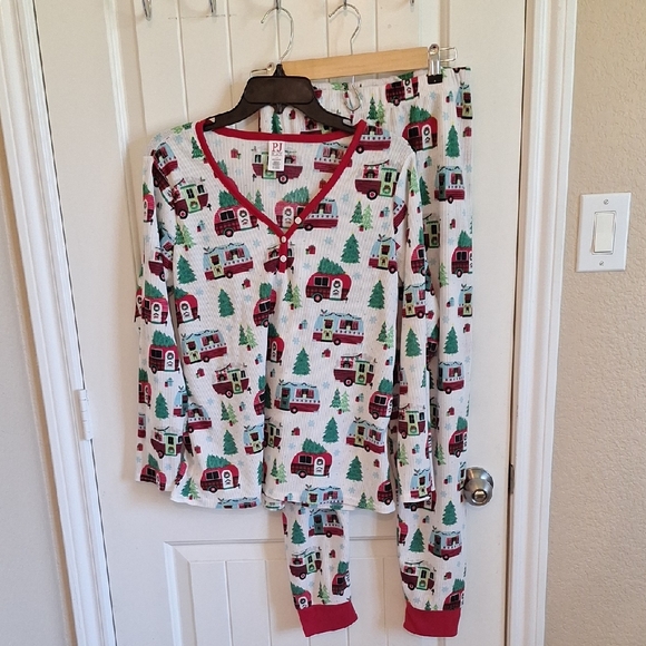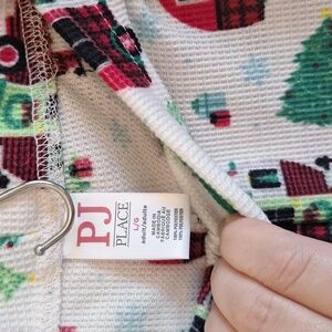 Adorable pajamas from Children's Place family sets. Size large for women. Worn once. Perfect for holiday photos. Fabric is slightly see through which I'm trying to show in the last photo with my hand under the fabric.