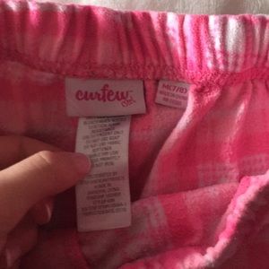 Soft plaid pink and white pjs with bow. No shirt included