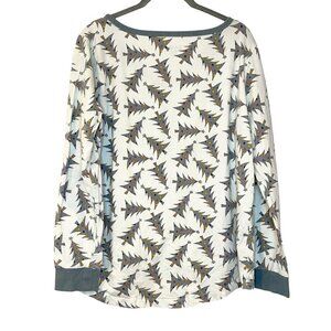 PajamaGram Womens Pajama Top M Henley Cotton Blend Long Sleeve Shirt Xmas Trees