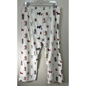 Festive two-piece Pajamagram pajama set featuring a variety of adorable dog breeds dressed for the holidays, including golden retrievers, dachshunds, poodles, and more. The top is a soft red long sleeve with a cheerful golden retriever wearing a Santa hat and bow tie, and the pants showcase an all-over Christmas dog print. Made from 100% cotton for cozy comfort and breathability. These pre-loved pajamas bring cheerful holiday style for lounging, gifting, or relaxing by the fire. Comparable new sets retail for around $65 on Amazon. Please review pictures for details.