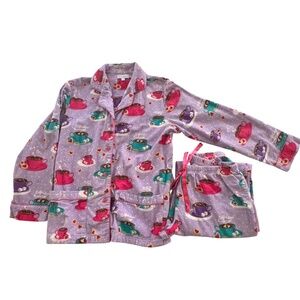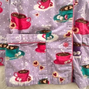Pajamagram Size SM 2pc Pajama Set Cotton Flannel Coffee Love Purple & Pink