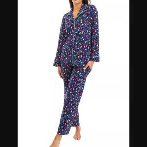 Pajamarama Christmas Lights Pajama Set Size SMALL Button Up Top Long Pants
