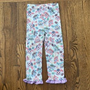 Owl design. Includes long pants, long sleeve button-down top, and robe with attached tie at waist.