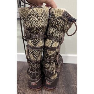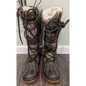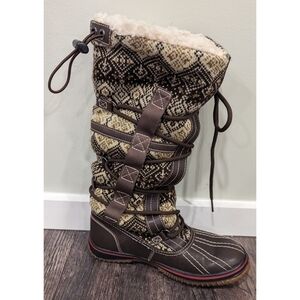 Pajar 63 Canada Fair Isle Shearling Lined Lace Up Grip Boots Size 37