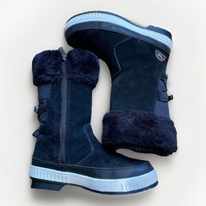 Pajar Canada black suede winter boots with plush faux shearling lining and waterproof construction.