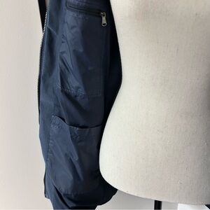 Slant zip pockets in front and 2 inner zip pocket and one slip pocket