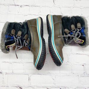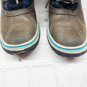 The Iceberg Faux Fur Waterproof Boot features brown leather and black / blue textile uppers, with gray plush faux fur lining for maximum warmth.