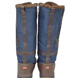 Navy blue winter boots, Cognac brown leather winter boots, tall boots, winter boots, snow boots, outdoor boots, leather boots, waterproof boots, weatherproof boots, canvas boot, lace up boots, grip boot, rubber boot, wool lined boots, pajar Canada, outerwear, Canadian snow boots, navy blue cognac brown tan leather, calf high boots, unique winter boots, warm boots, knee high hi boots, apres boots, ski vacation boots