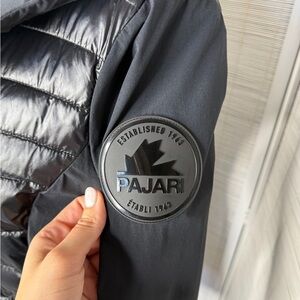 ✨ Pajar Cressy Stretch Puffer jacket. In the color black. Rubber patch logo. Rain repellant and packable. Has thumb holes. Good used condition!