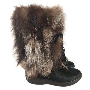 Pajar Fox Trot Winter Fur Boot Size 38 US 7.5 Womens Black Silver $620