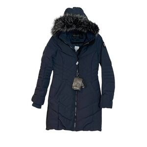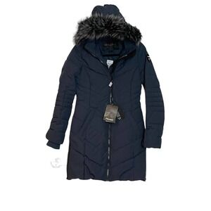 Pajar Navy Quilted Down Faux Fur Trim Parka Winter Jacket Coat XS