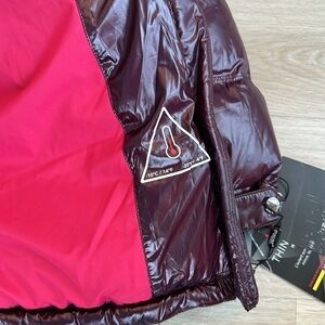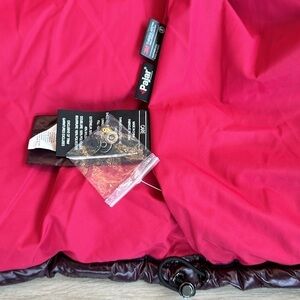 Pajar Nevis insulated puffer jacket in the color burgundy women’s size xLarge. Equipped with two way front zipper, adjustable hem, hood, and cuffs. Warm Thinsulate insulation is featherless, looks, feels, and performs like 800 fill down.