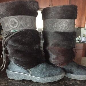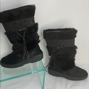 Pajar Olympic Sz 7 Fox Fur/Calf Hair Black Boot