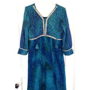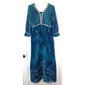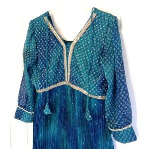 Pakistani Indian Dress XL Blue Maxi Beaded Empire Waist Bollywood Wedding Prom