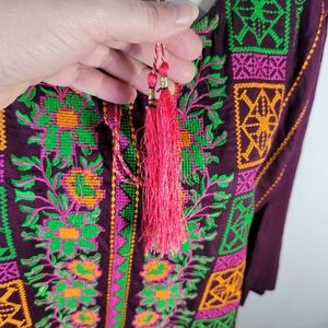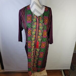 Pakistani Linen Embroidered long Tunic Top Size XL Maroon Beautiful Embroidery