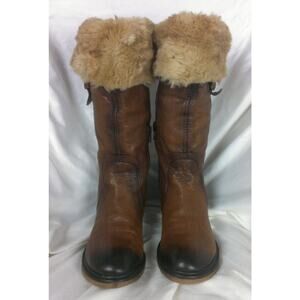 Pakros Distressed Leather Sherpa Trim Mukluk Boots Brown Sz EU 37 (US 7M)