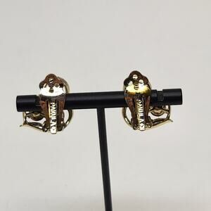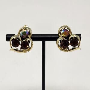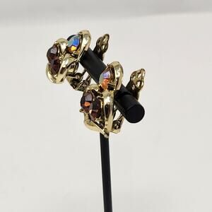 Pakula Cluster Brown Aurora Borealis Crystal Clip On Earrings Gold Tone Vintage