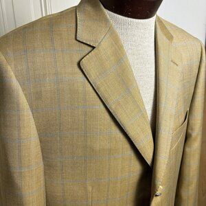 Pal Zileri Beige Blue Windowpane Wool Blazer Men’s Size 52L IT | 42L US MINT