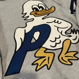 Palace Duck Out Hoodie in Grey. Features the classic Palace Duck Out graphic on the front. Great piece for collectors and streetwear enthusiasts seeking a lightly worn, rare Palace hoodie.