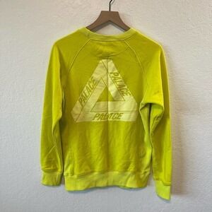 Palace Logo Slub Crew Neck Long Sleeve Pullover Sweatshirt Lime Green Small