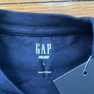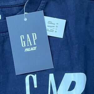 This navy blue t-shirt features the iconic Palace logo alongside the classic GAP branding.