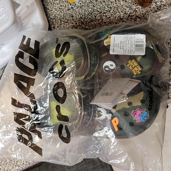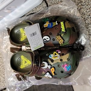 Brand New with Tags Size 11 Palace×Crocs 2nd Camo drop. comes with all of the Palace displayed Jibbets you see pictured. price is firm