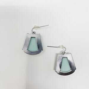Pale Aqua Blue Geometric Drop Earrings Silver Tone Fashion Statement