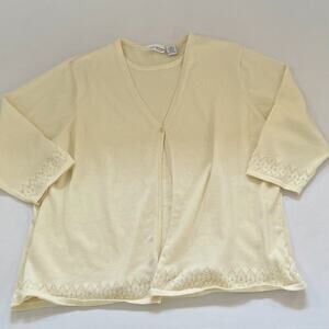 Croft & Barrow Pale Butter Yellow Cotton Blend Mock Shirt/Top & Cardigan Combo/Set