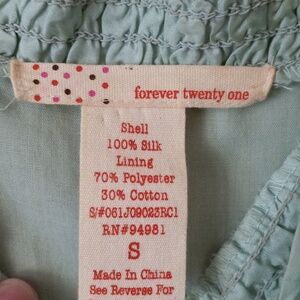 Beautiful pale green 100 percent silk outer. Lined. knee length. slight staining in armpits, not visible when wearing.