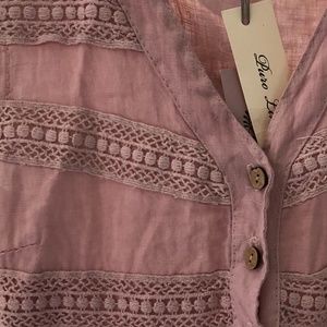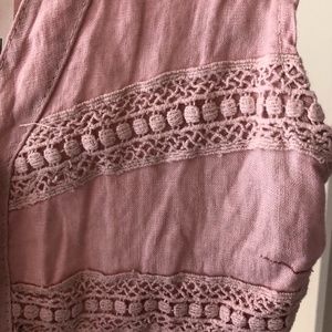 Pale Pink Linen Cotton Sleeveless Eyelet Sundress