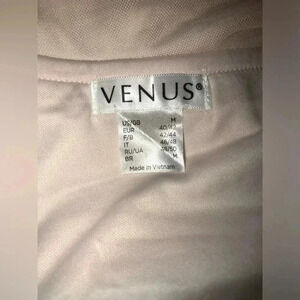 A knee-length dress in a soft, pale pink color with an off-the-shoulder neckline and short sleeves, perfect for weddings and cocktail events.