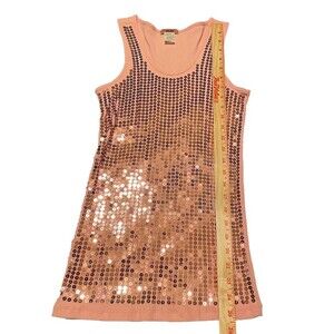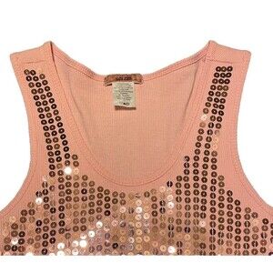 Pale Pink Stretch Fit Ribbed Long Tank Top With SEQUINS Women’s Size Large