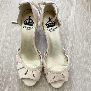 A very faint cream/pale pink color. Ankle strap.