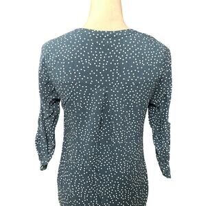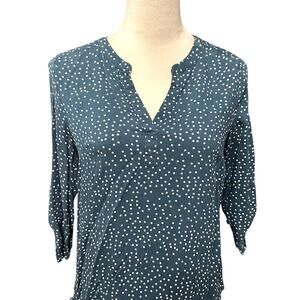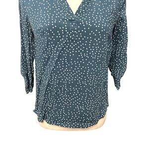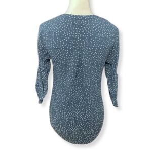 Pale Sky Blouse Polka Dot Pattern 3/4 Sleeves Split Neck Blue/White Women's PS