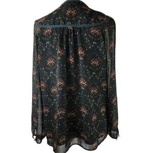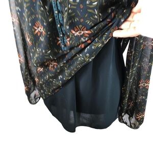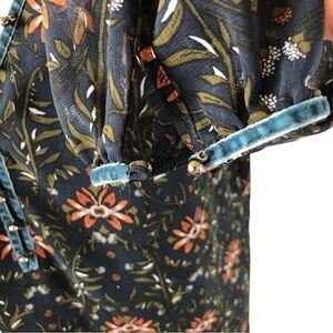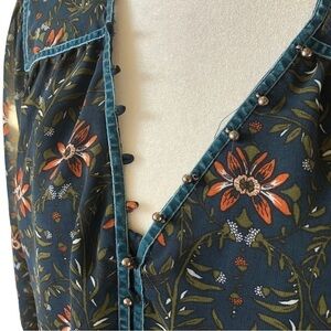 Pale Sky Dark Floral Pullover Top Women M Teal with Orange Flowers Lined