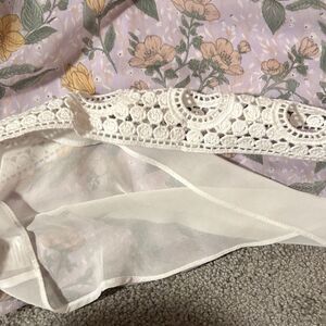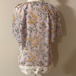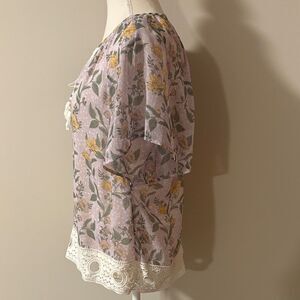 Pale Sky Floral Lace Trim Blouse - Purple and Yellow. Size Small