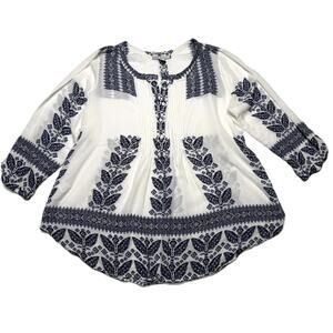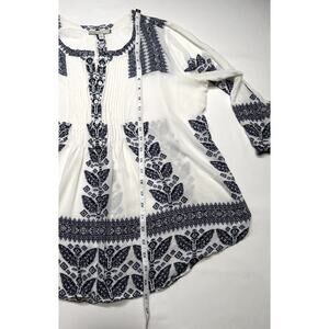 Pale Sky Women Pleated Tunic Top Boho Peasant Western Cowgirl, split neck top
