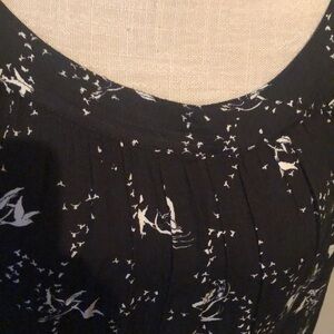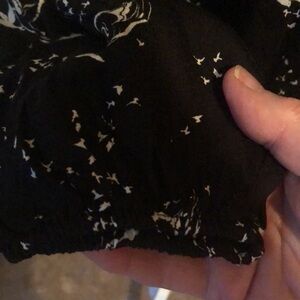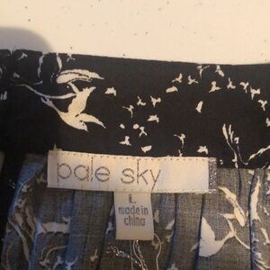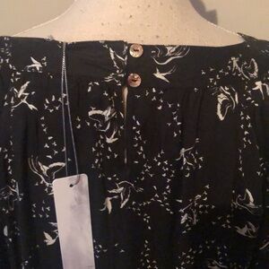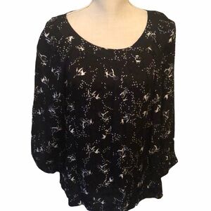Pale sky peasant style scoop neck l, gathered neckline. Ragland 3/4 sleeve with elastic cuff. Black fabric with white bird like design .lg. NWT