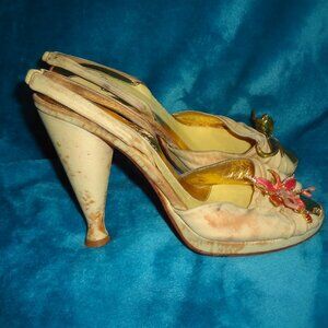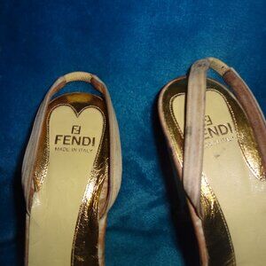 Pale Yellow Fendi Sandals with Decorative Flower and Leaf are a size 38/8 with a 4” heel and a slingback strap. These pumps were made in Italy and have been very well kept.