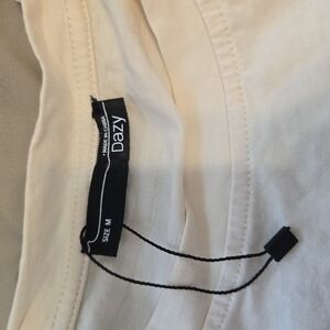 Dazy's pale yellow shirt offers a touch of whimsy with its embroidered butterfly accents, perfect for adding a feminine flair to your casual wardrobe. The short sleeve design and round neck make it a comfortable and stylish choice for any day out. Made from a blend of 100% cotton and polyester, this T-shirt promises both softness and durability.