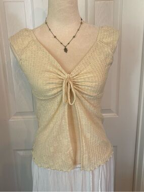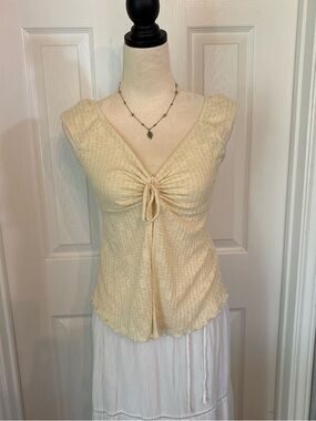 Pale Yellow Tie-Front Ribbed Tank