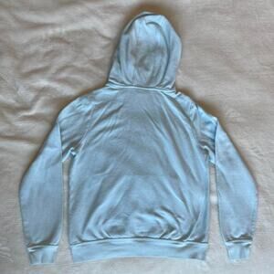 Pale blue Nike sweatshirt - size small - has a funnel neck type hood. See very very small stain I spotted on the front. Only worn a couple times