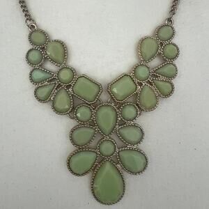 Pale green acrylic bib statement necklace on gold tone adjustable chain