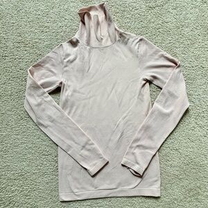 Pale pink Athleta ribbed turtleneck long sleeve top
