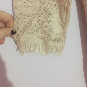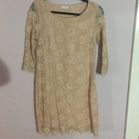 New York and Company lace dress. The dress is a very pale pink and has eyelash lace on the sleeve and bottom